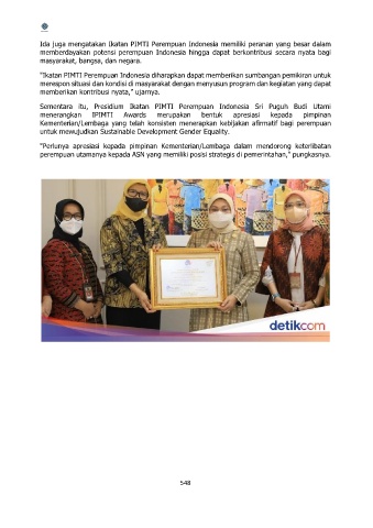 Ida juga mengatakan Ikatan PIMTI Perempuan Indonesia memiliki peranan yang besar dalam