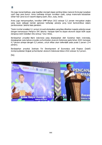 Anies juga menyampaikan, kenaikan UMP tahun 2022 sebesar 5,1 persen merupakan angka