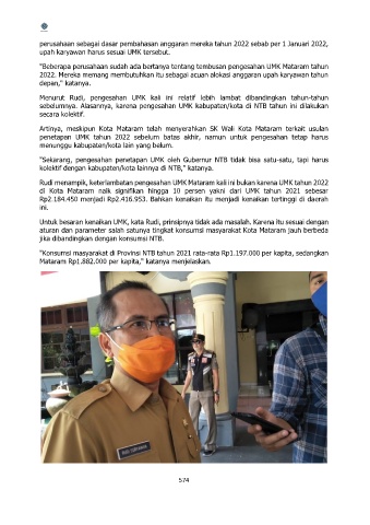 di Kota Mataram naik signifikan hingga 10 persen yakni dari UMK tahun 2021 sebesar