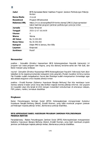 Judul BPJS Apreasiasi Babel Hadirkan Program Jaminan Perlindungan Pekerja
