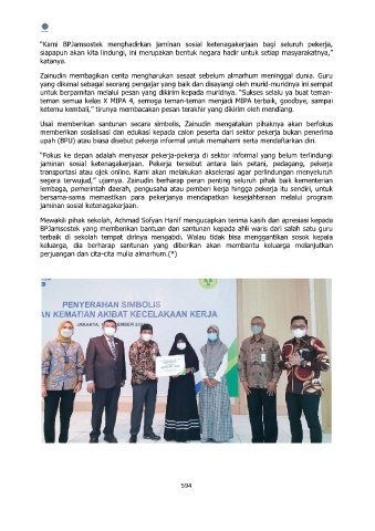 BPJamsostek yang memberikan bantuan dan santunan kepada ahli waris dari salah satu guru