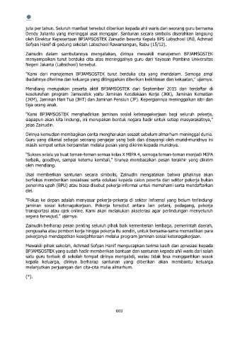 BPJAMSOSTEK yang sudah hadir memberikan bantuan dan santunan kepada ahli waris dari salah