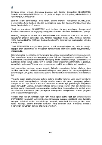 Zainudin dalam sambutannya mengatakan, dirinya mewakili manajemen BPJAMSOSTEK