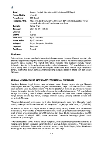 Judul Krayan Menjadi Jalur Alternatif Perlintasan PMI Ilegal