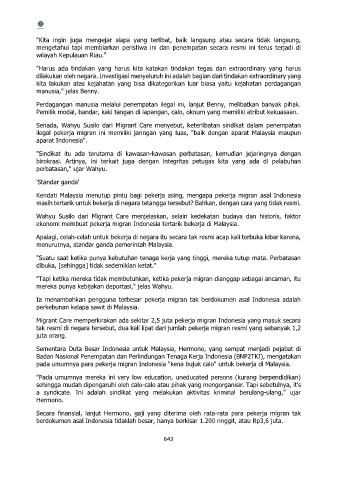 ilegal pekerja migran ini memiliki jaringan yang luas, "baik dengan aparat Malaysia maupun