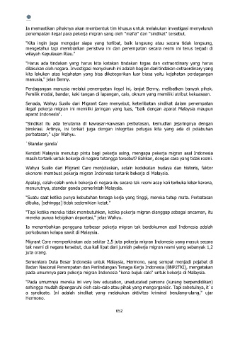 penempatan ilegal para pekerja migran yang oleh "mafia" dan "sindikat" tersebut.