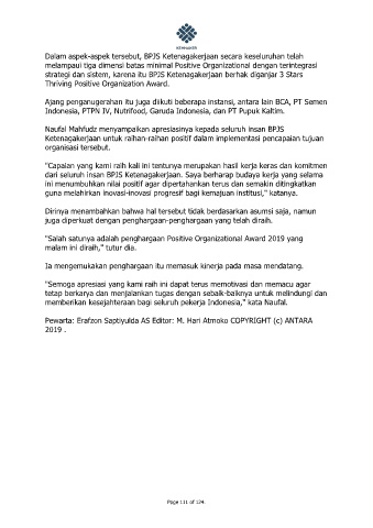 "Salah satunya adalah penghargaan Positive Organizational Award 2019 yang