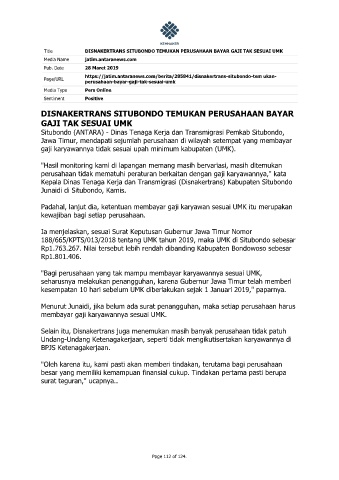 Title DISNAKERTRANS SITUBONDO TEMUKAN PERUSAHAAN BAYAR GAJI TAK SESUAI UMK