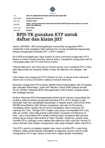 (Jaminan Hari Tua). "Dengan KTP-e Reader yang cukup menempelkan KTP-e lalu