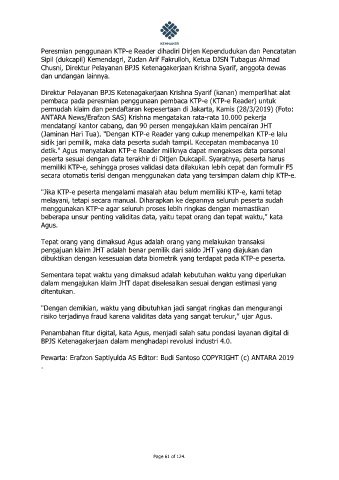 (Jaminan Hari Tua). "Dengan KTP-e Reader yang cukup menempelkan KTP-e lalu