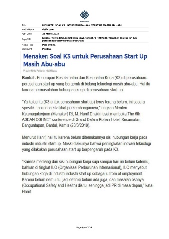 Title MENAKER: SOAL K3 UNTUK PERUSAHAAN START UP MASIH ABU-ABU