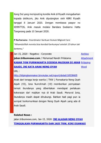 KABAR TKW PURWAKARTA DISIKSA MAJIKAN DI ARAB Eclipping