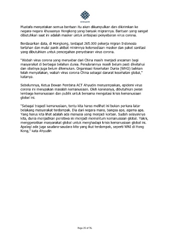 Sebelumnya, Ketua Dewan Pembina ACT Ahyudin menyampaikan, epidemi virus