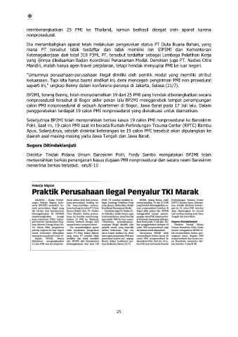 memberangkatkan 25 PMI ke Thailand, namun berhasil dicegat oleh aparat karena