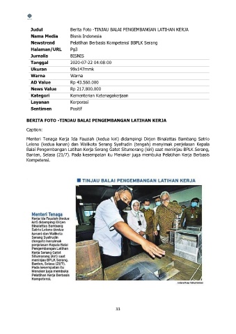 Judul Berita Foto -TINJAU BALAI PENGEMBANGAN LATIHAN KERJA