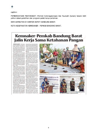 caption: PEMBERDAYAAN MASYARAKAT: Menteri Ketenagakerjaan Ida Fauziyah (kanan) tanam bibit pohon dalam pelatihan dan program padat karya pertanian. BERI SAMBUTAN DI KANTOR BUPATI BANDUNG BARAT. NOTA KESEPAKATAN KEMENAKER - PEMKAB BANDUNG BARAT. 4
