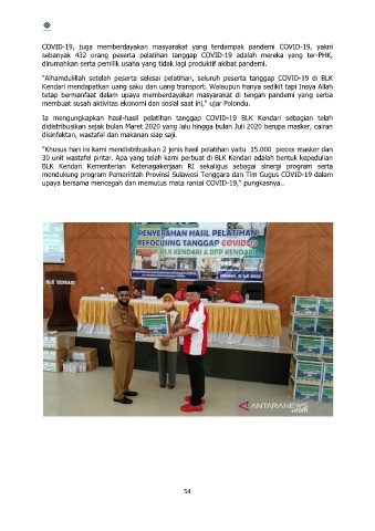 sebanyak 432 orang peserta pelatihan tanggap COVID-19 adalah mereka yang ter-PHK,
