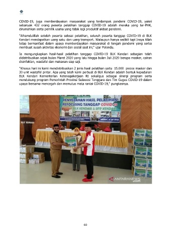Ia mengungkapkan hasil-hasil pelatihan tanggap COVID-19 BLK Kendari sebagian telah