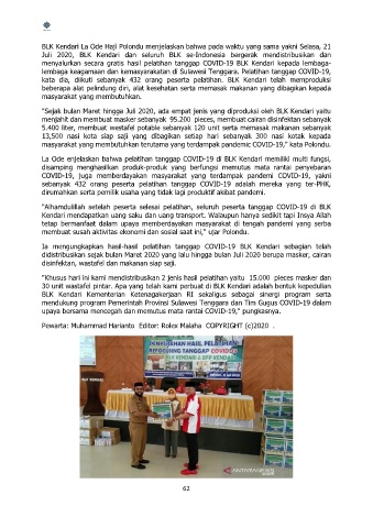 Juli 2020, BLK Kendari dan seluruh BLK se-Indonesia bergerak mendistribusikan dan