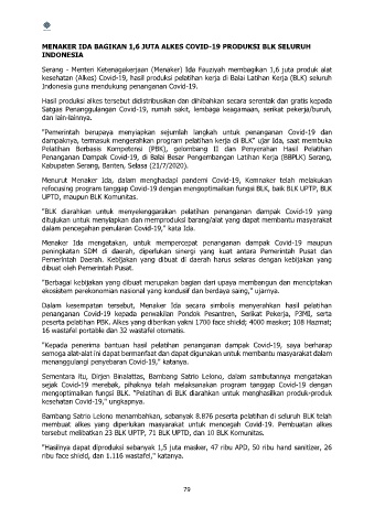 MENAKER IDA BAGIKAN 1,6 JUTA ALKES COVID-19 PRODUKSI BLK SELURUH
