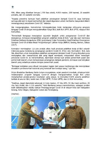 Indonesia guna mendukung penanganan pandemi Covid-19. (Foto: dok. Kemnaker) BLK, kata