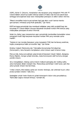 karyawan PT Unisem Batam maupun karyawan-karyawan korban PHK lainnya yang