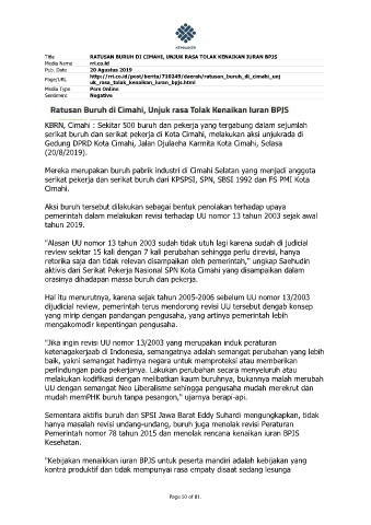 Title RATUSAN BURUH DI CIMAHI, UNJUK RASA TOLAK KENAIKAN IURAN BPJS