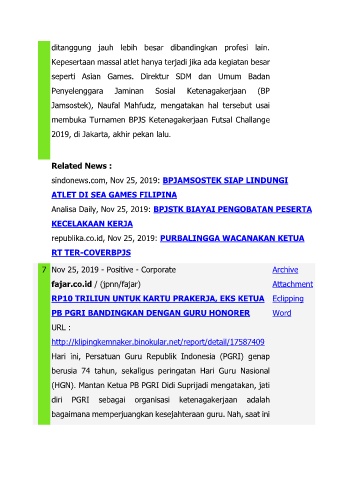 sindonews.com, Nov 25, 2019: BPJAMSOSTEK SIAP LINDUNGI