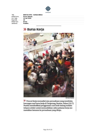 Title BERITA FOTO - BURSA KERJA Media Name Koran Jakarta Pub. Date 24 Juli 2019 Page/URL 10 Media Type Koran Sentiment Positive Page 20 of 122.