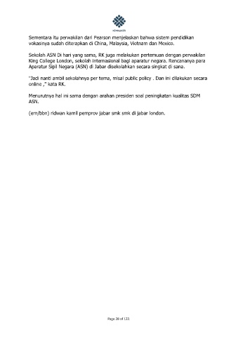 King College London, sekolah internasional bagi aparatur negara. Rencananya para