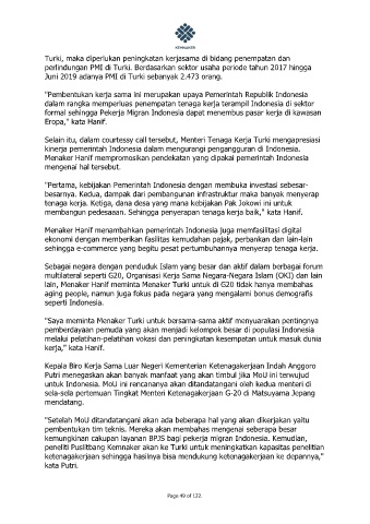 Turki, maka diperlukan peningkatan kerjasama di bidang penempatan dan