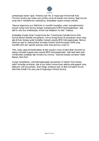 seluruh warga Kota Serang dengan menjadi peserta BPJS Ketenagakerjaan. Jadi,