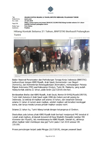 Title HILANG KONTAK SELAMA 21 TAHUN, BNP2TKI BERHASIL PULANGKAN TURINI