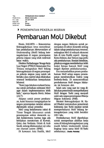 Title PEMBARUAN MOU DIKEBUT Media Name Bisnis Indonesia Pub. Date 24 Juli 2019 Page/URL 22 Media Type Koran Sentiment Positive Page 8 of 122.