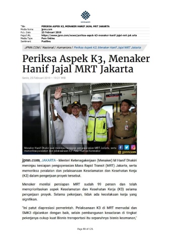 Title PERIKSA ASPEK K3, MENAKER HANIF JAJAL MRT JAKARTA