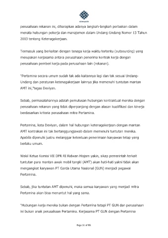 Pertamina, kata Deviyan, dalam hal hubungan ketenagakerjaan dengan mantan