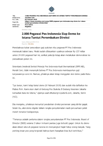 Title 2.000 PEGAWAI POS INDONESIA SIAP DEMO KE ISTANA TUNTUT PEROMBAKAN DIREKSI