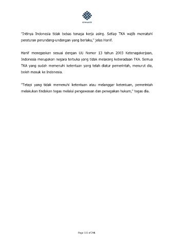 "Intinya Indonesia tidak bebas tenaga kerja asing. Setiap TKA wajib mematuhi