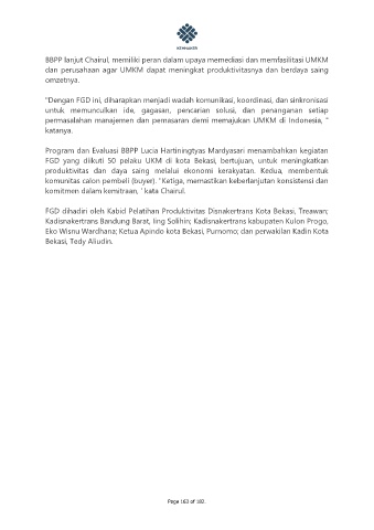 BBPP lanjut Chairul, memiliki peran dalam upaya memediasi dan memfasilitasi UMKM