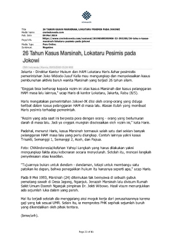 Title 26 TAHUN KASUS MARSINAH, LOKATARU PESIMIS PADA JOKOWI
