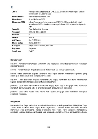 negative - Heru Setyawan (Kepala Disnakerin Kota Tegal) Ada sanksi bagi perusahaan yang tidak