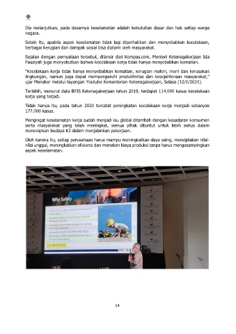 Fauziyah juga menyebutkan bahwa kecelakaan kerja tidak hanya menyebabkan kematian.