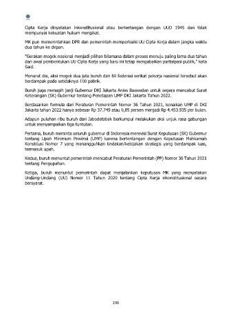 Cipta Kerja dinyatakan inkonstitusional atau bertentangan dengan UUD 1945 dan tidak