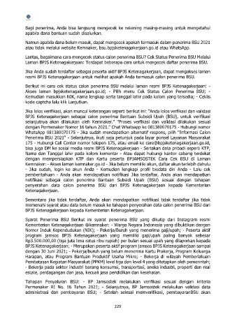 atau tidak melalui website Kemnaker, bsu.bpjsketenagakerjaan.go.id atau WhatsApp.