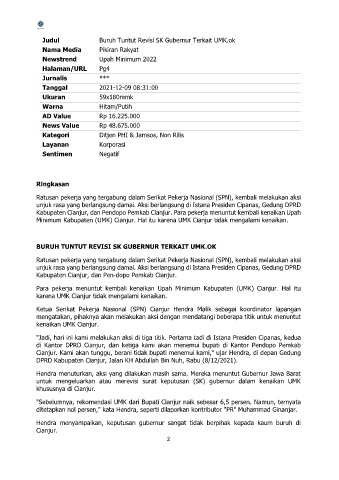 Minimum Kabupaten (UMK) Cianjur. Hal itu karena UMK Cianjur tidak mengalami kenaikan.