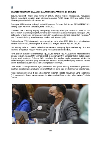 Politikus Fraksi PDI Perjuangan ini menyampaikan, pada tahun 2021, UMK Kabupaten Badung