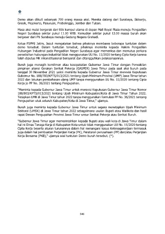 Negeri Surabaya sekitar pukul 11.00 WIB. Kemudian sekitar pukul 13.00 massa buruh akan