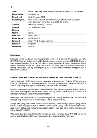 Judul Buruh Tagih Janji Anies Baswedan Menaikkan UMP 2022 DKI Jakarta