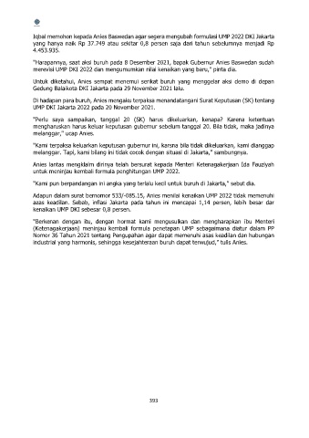 Adapun dalam surat bernomor 533/-085.15, Anies menilai kenaikan UMP 2022 tidak memenuhi