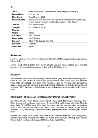 DEMO BURUH DI MK, JALAN MERDEKA BARAT JAKPUS MULAI DITUTUP